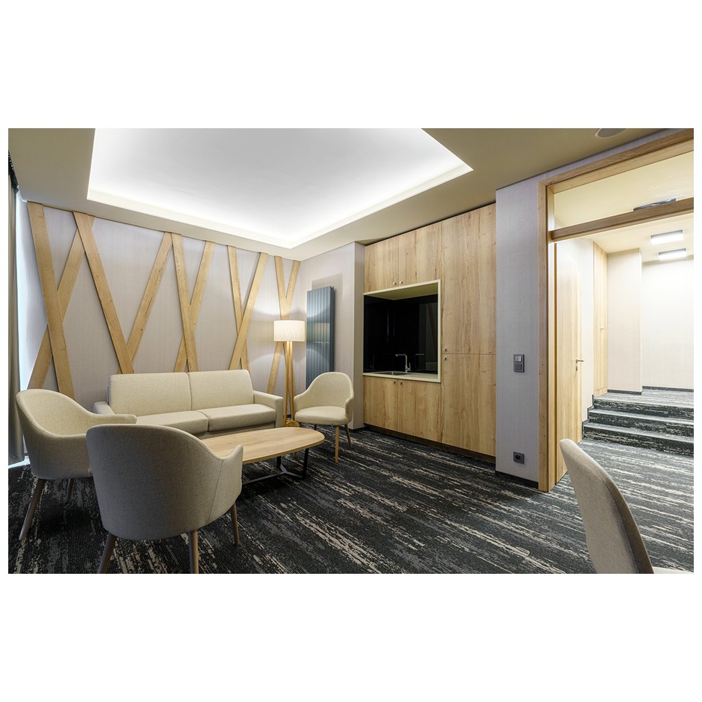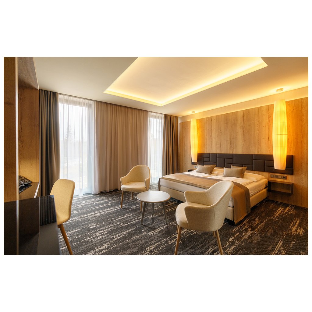 antialergické paplóny, francúzske okno, klimatizácia, kozmetický set, LCD TV 55“, minibar, ortopedické matrace, parkovanie pri hoteli, room service – rozvoz jedla na izbu, set kávy a čaju, sprcha, WC, sušič na vlasy, telefón, trezor, Wi-Fi, župan, papuče