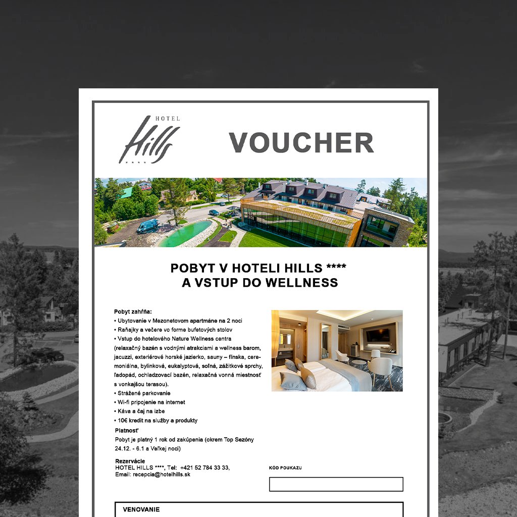 Voucher na 2 noci pre 2 až 4 osoby, ktoré túžia po výnimočnom komforte, súkromí a harmónii v srdci Tatier. Doprajte si pobyt v mezonetovom apartmáne, kde každý detail spája pohodlie, elegantný horský štýl a nádherný výhľad na Studený potok. Čaká vás vstup do wellness centra, bohaté raňajky formou bufetu, káva a čaj priamo na izbe, strážené parkovanie, Wi-Fi pripojenie a kredit na hotelové zážitky, ktoré spríjemnia každý okamih vášho pobytu.